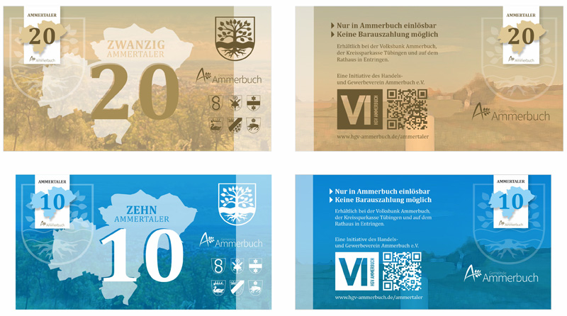 Der Ammertaler ist der offizielle Geschenkgutschein für Ammerbuch. Gemeinsam von der Gemeinde Ammerbuch und dem Handels- und Gewerbeverein Ammerbuch e.V. ins Leben gerufen, verfolgt er ein klares Ziel: die Kaufkraft in der Gemeinde zu halten und das örtliche Gewerbe sowie die Gastronomie nachhaltig zu stärken.